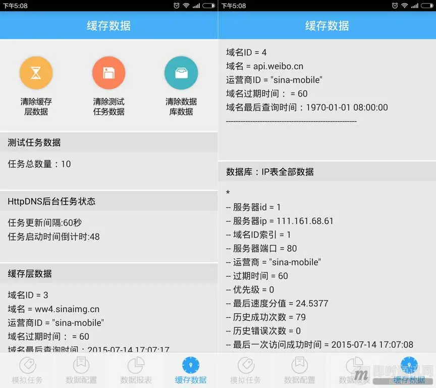 lib模块设定定时器,根据ttl过期时间来检查domain是否需要更新。 定时器是独立线程, 不会影响app主线程。 httpdns api请求数据, 先从自己配置的 httpdns api接口获取数据,如果获取不到会从 dnspod api接口获取如果也获取不到 直接从本地 localDNS获取数据,(从本地localDNS获取数据后期会改为发送UDP包封装dns协议从公共dns服务器直接获取,比如114dns等。dns服务器地址可自行设定。 )获取到数据后进入测速模块。 测速模块最新版本可以配置两种方式,一种是http空请求。 两个http头的交互,类似tcp首保耗时时间原理 ,用来测试链路最快。 另一种是ping命令,(icmp协议)来尽量最小化流量的消耗,考虑倒可能有的服务器禁ping就使用空http测速即可。 测速后将数据插入本地 cache 即可。