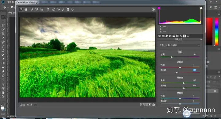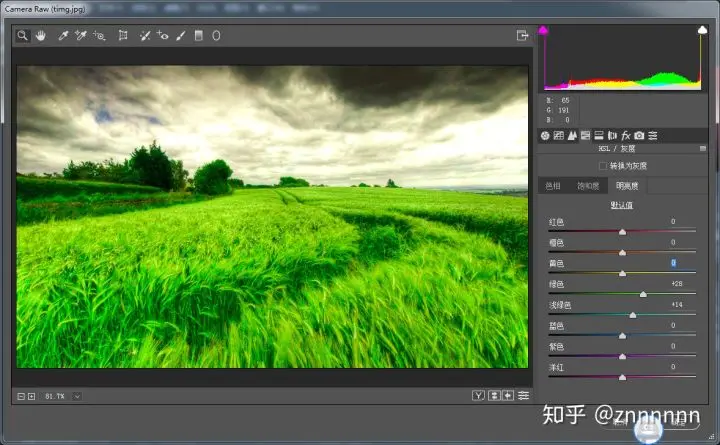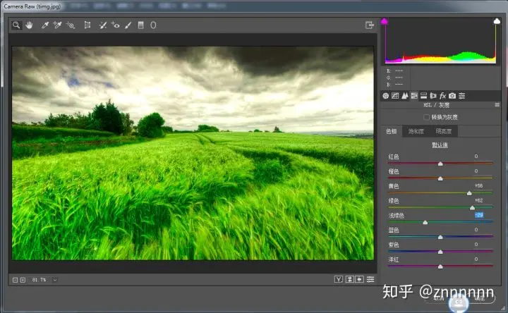 然后打开HSL,由于动漫的草地是比较绿的,所以我把草地的颜色做了调整