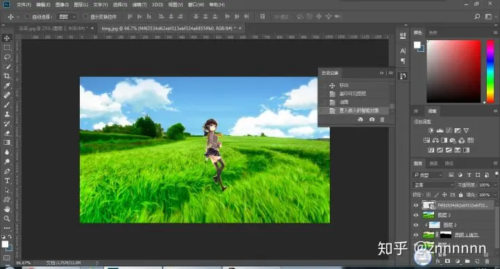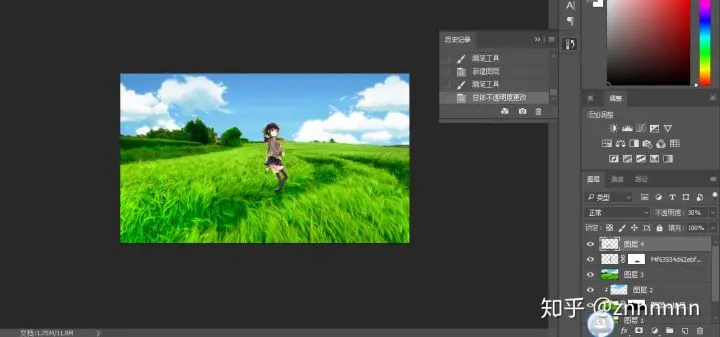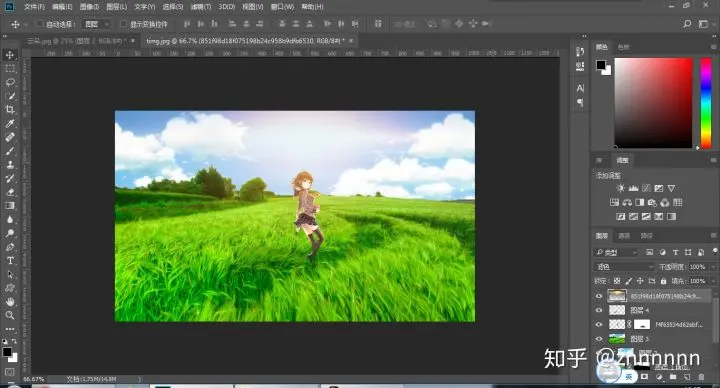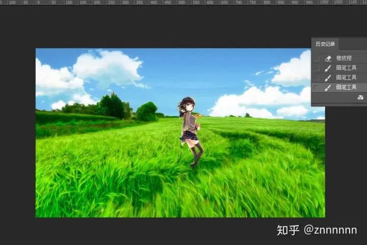 草变得有点杂乱了,有点像一副画。但是我感觉这样草地里会空空的,我找了了一个二次元人物,拖到这个草坪里