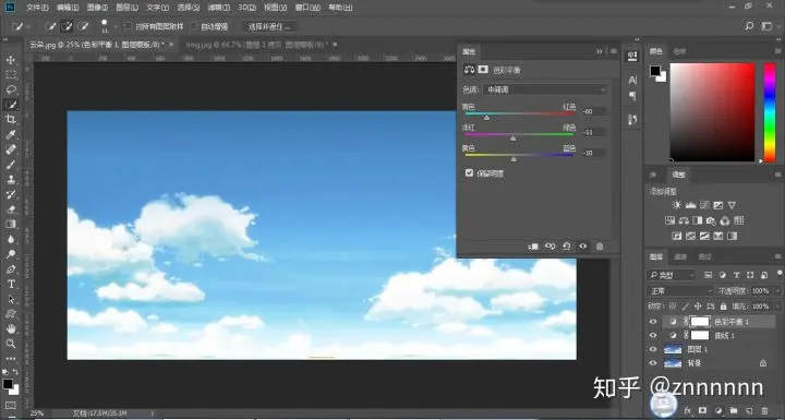 我先进行曲线调整,让它变得亮一点。然后我在进行色彩平衡的调整,动漫的天空通常是偏青色的,这里我可以分享一下我的参数,效果如下图