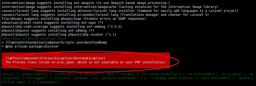 composer install- 解决办法同上,打开php.ini,并搜索disable_functions指令,找到类似如下内容: