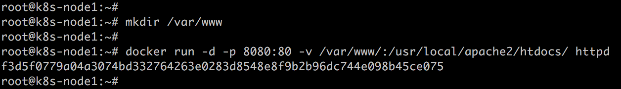 k8s-node1上启动一个 httpd 容器。
