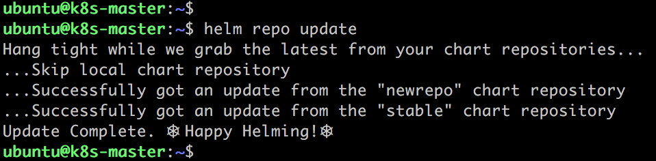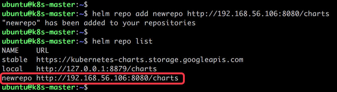 仓库命名为newrepo,Helm 会从仓库下载 index.yaml。 -