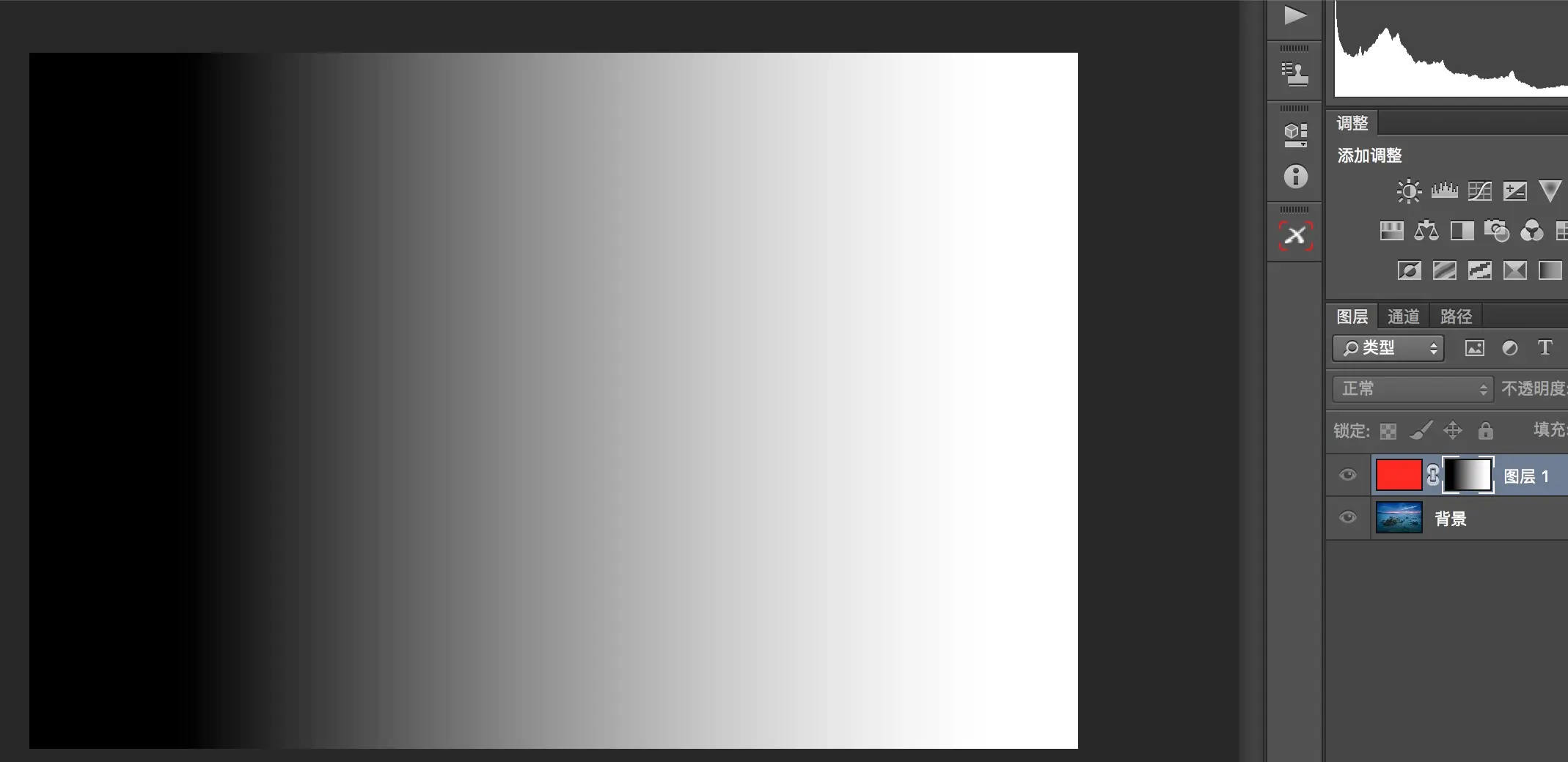 要编辑蒙板,要保证蒙板是在激活状态(鼠标单击蒙板就可以激活该蒙板),否则编辑的会是图层而不是蒙板。这里我直接拉一个由黑到白的渐变。