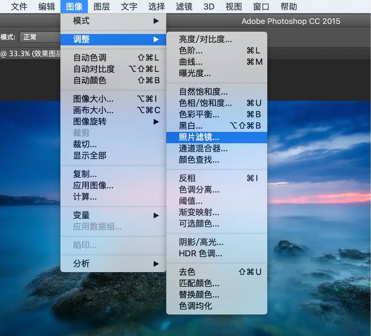 “图像-调整”菜单下面有色阶、曲线、饱和度等等各种调整选项,可以调整图像的影调和色调。但是这些动作同样是有破坏性、不可撤销的,所以我们需要使用调整图层。