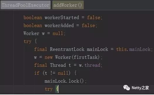 3、消息解码完成之后,投递到后端的一个业务线程池中处理,线程池使用的是JDK自带的线程池