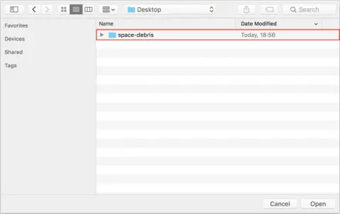 打开本教程的示例文件;它们包含三个文件夹:game assets, models 和 starter project。 您可以简单地使用在本教程的第一部分中处理的项目,也可以使用File \ Open Project从Unity中的文件夹启动项目打开项目,然后选择Space Debris项目文件夹。