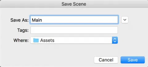 单击Command-S保存您的游戏。 将打开一个保存对话框;为你的场景命名Main如下: