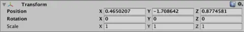 如上一篇所述,层次结构中的所有内容都将是一种GameObject。 GameObject本身包含所谓的变换(transform),它包含有关GameObject的位置,比例和旋转的信息: