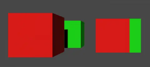 您可以为投影场选择Perspective或Orthographic;这个选择决定了游戏的最终外观。 透视投影(Perspective projection)表现得非常像你的眼睛;物体离眼睛越近,它就越大。 正交投影(Orthographic projections)丢弃深度信息;靠近你的物体,或者在这种情况下,相机,将显示与更远的物体相同的尺寸: