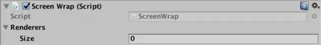 您会注意到此脚本有一个名为Renderers的字段,该字段采用蒙皮网格渲染器数组,即创建模型的几何体。 如果渲染器不在屏幕上,则它会根据游戏对象的移动方向和当前位置将游戏对象传送到屏幕上的另一个位置。