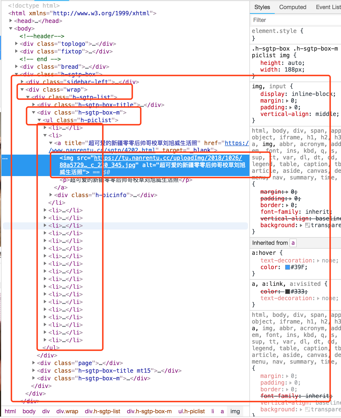 假如我们要爬取 www.nanrentu.cc/sgtp/ 链接的图片 首先先分析此页面的结构