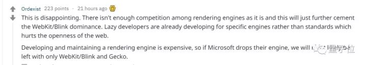 Reddit上排名最靠前的一个评论表示,对此非常失望,因为这减少了竞争。