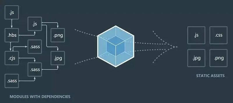 如从官网上截取的图片所示,在 Webapck眼中一切文件( .js、 .css、 .jpg、 .woff、 .csv和 .ts等除了某些用于下载的静态大文件外)都是模块,都能通过与 JS相似的方式被打包,并安置于合适浏览器渲染的位置。真是十分优秀的立足点。以此思想便可囊括前端会使用到的几乎所有资源,可以十分方便的统一管理和安置,更为便捷和高效。