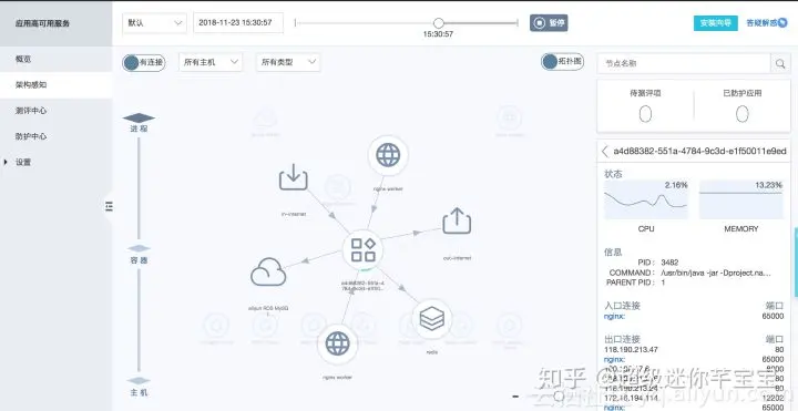 还有一种自动化架构感可视化方法,我们称之为“无界架构感知”,是一种语言无关性的架构识别方案,其采用采集用户主机上的进程和容器的元数据、监控数以及网路数据的最最基础的数据,在服务端构建架构图。
