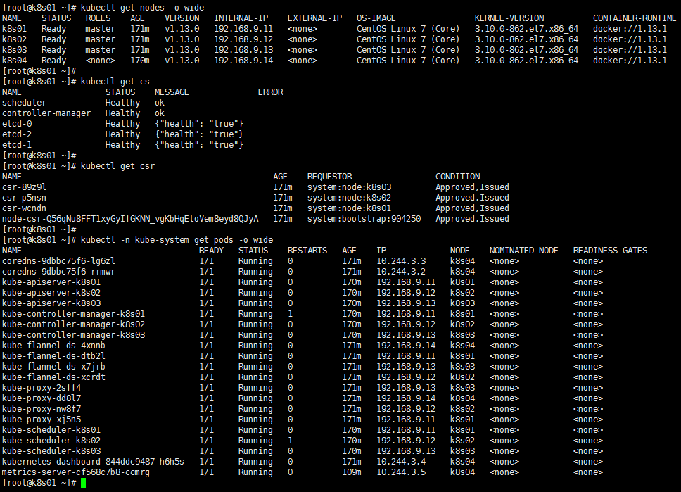 如果界面上所有角色图标全部变为绿色,则表示部署任务结束。可以登录任一k8s节点运行命令 kubectl get nodes 查看结果。