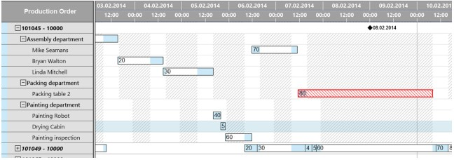 很多人使用甘特图进行粗略规划和详细规划。在粗略的计划中,他们会查看几个星期甚至几个月的生产计划,而在详细的计划中,他们会关注几天或几个小时。当然,在详细的视图中,颜色提醒在barlevel上起着重要的作用。