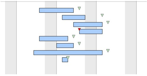 在bar的外观上,您还可以向bar添加符号而不是改变颜色,这些符号为您提供上下文敏感的信息。三角形表示到期日。绿色表活动及时完成。红色表活动超时。