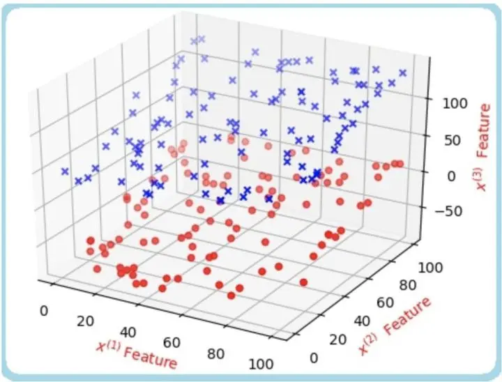 想像D维空间里分布着个线性可分的实例点 ,当D=3时,这个空间即是一个便于理解的三维空间,其上的任意实例点