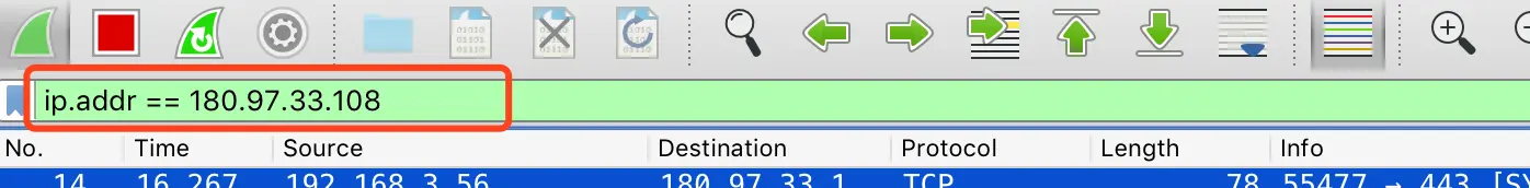 我这里利用了百度的首页做了一次抓包实验,首先要设置一个过滤