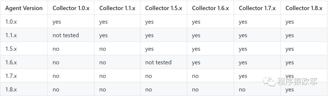 agent和collector支持关系