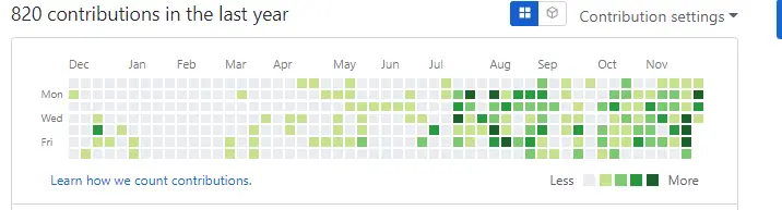 个人一直觉得Contributions Wall很赞,它基本上记录了自己动手实践的轨迹,比如2017年找实习那段时间,每天刷一道leetcode,如果某天空白了,说明偷懒了;2018年5月-9月为了熟悉主流机器学习和深度学习框架,比如Keras、TensorFlow,自己开始动手做一些项目,最开始模仿,做多了看到新数据集,自己就有想法了。