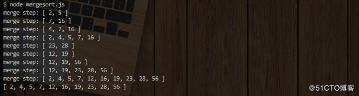 }//使用数组进行测试unSortArr = [5,2,4,16,7,23,28,56,12,19];console.log(mergeSort(unSortArr));结果如下: