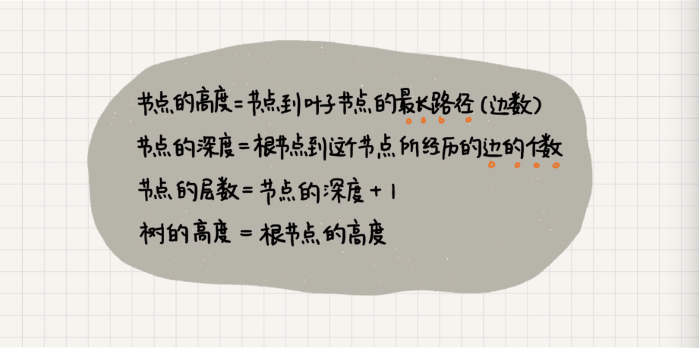 关于树还有三个相似概念:高度(Height)、深度(Depth)、层(Level)。