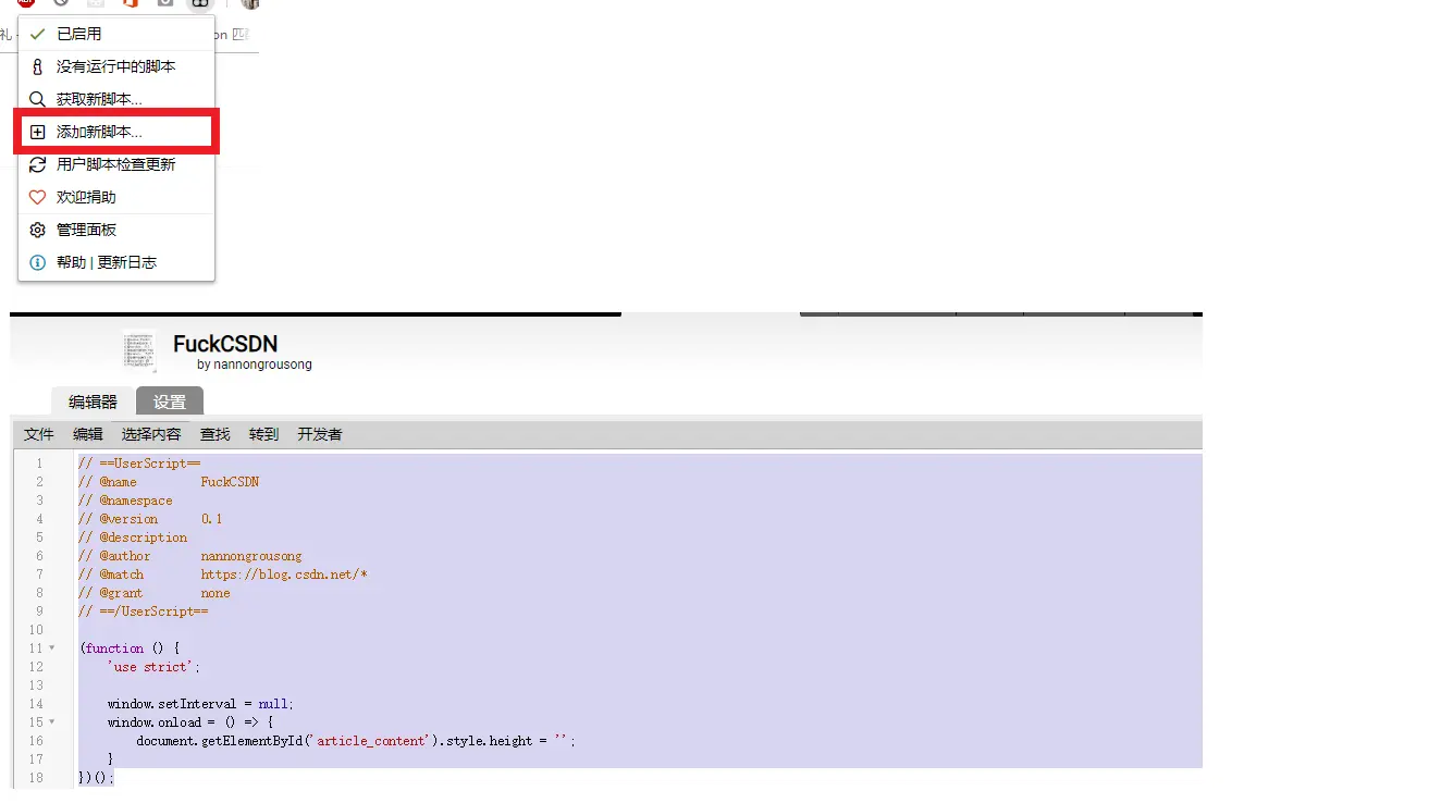 这样就完成了一个简单的脚本,保存一下以后每次打开csdn blog页面代码就会自动执行~终于可以不用强制跳转也可以看到文章全部内容啦~