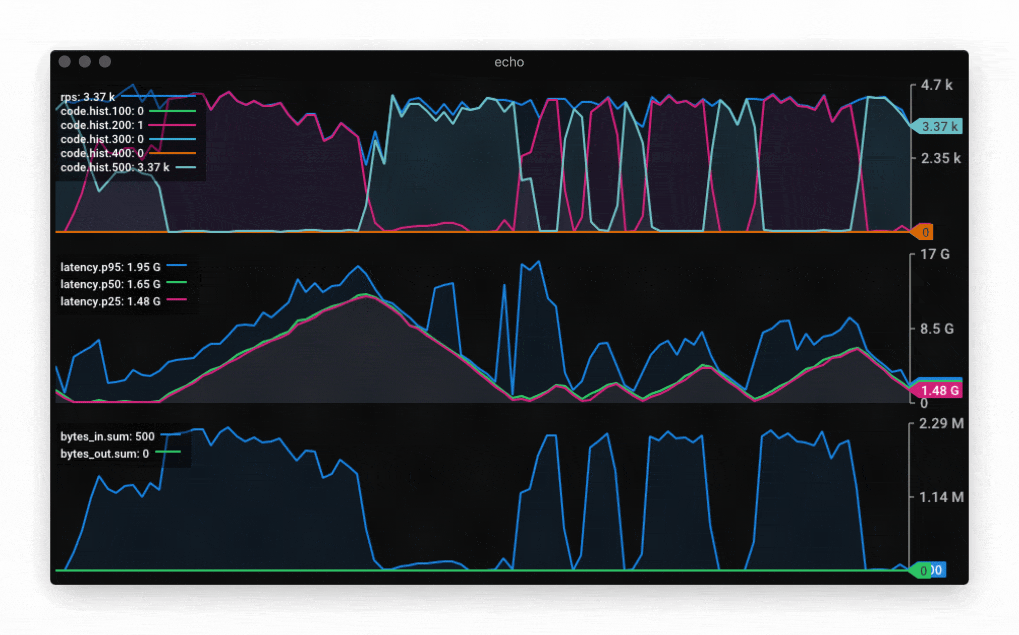 Bytes In [total, mean] 3714690, 3095.57