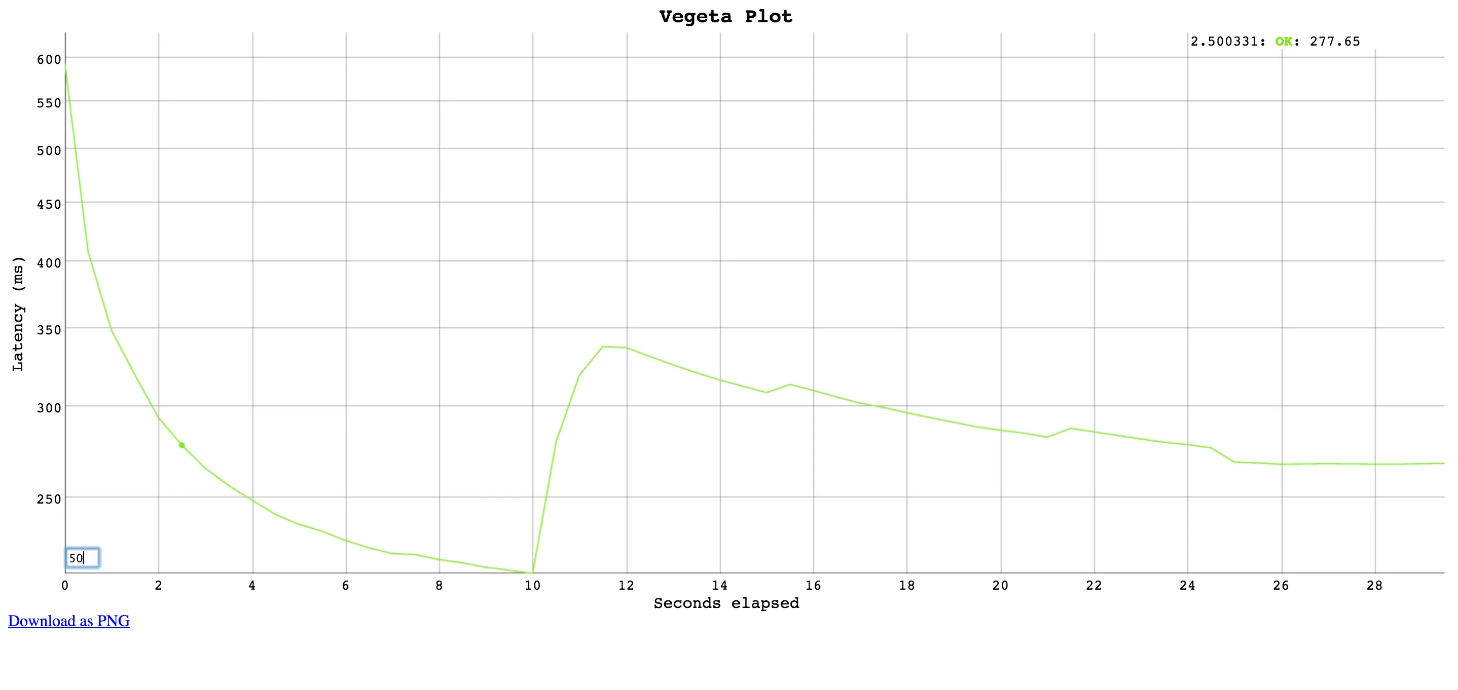 $ cat results.bin | vegeta report -reporter=plot > plot.html