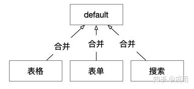这样方便少写重复的配置属性,比如caption不论在表单、表格、搜索中的名字应该是统一的,一般就定义在default中。