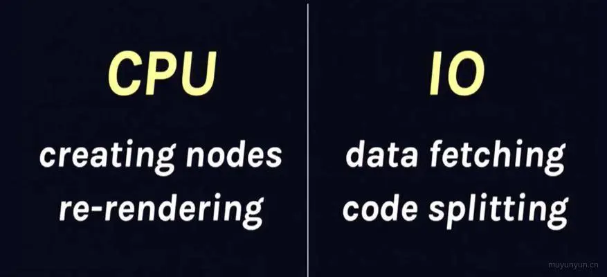 在 18年的 JSConf Iceland 上, Dan 神提到 Concurrent Render 涉及到 CPU 以及 IO 这两方面。