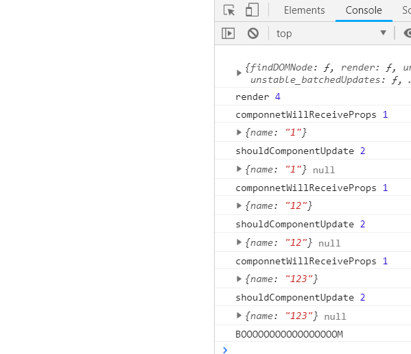- shouldComponentUpdate: 组件是否更新,返回布尔值,默认值为true,表示更新;返回false会阻止render调用,render后面的函数都不会执行。
