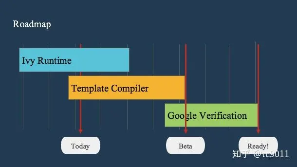 你可以看到Ivy开始于runtime,与模板编译器的工作重叠。一旦完成这些,beta版将开始进行Google的内部验证流程。此验证过程包括确保Ivy不会对使用Angular的600多个内部应用程序进行重大更改。这确保了在Ivy发布之前将完全向后兼容。