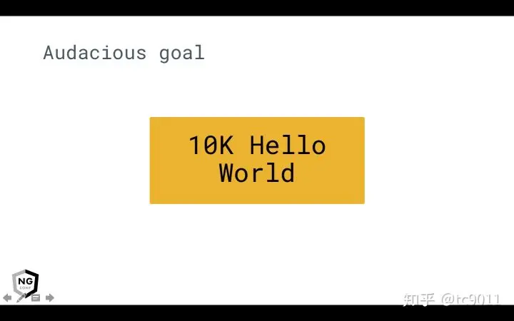 有些人可能还记得这张幻灯片。 是的,如果我们得到10Kb以下的Angular Hello World,Brad就会答应一块蛋糕。 布拉德没有说明它是 minified 还是压缩后的数字,但可以肯定地说我们击败了两者。