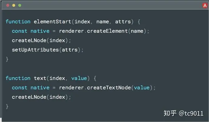 所以现在如果你看一下Angular代码,我们不需要进行任何条件检查。 我们只有原子函数来转换DOM,并根据你编写的模板生成。