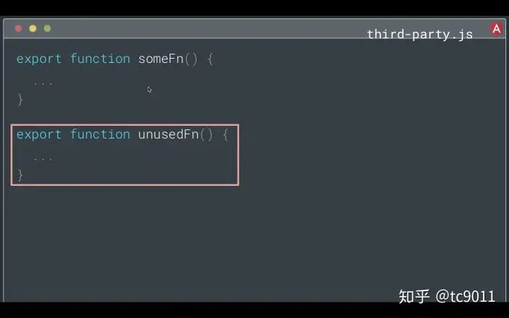 举一个简单的例子,如果你在第三方库中使用someFn,但是在这里没有使用过unusedFn,一个 tree-shaking 工具可以确保unusedFn不会在你最终的 bundle 中。