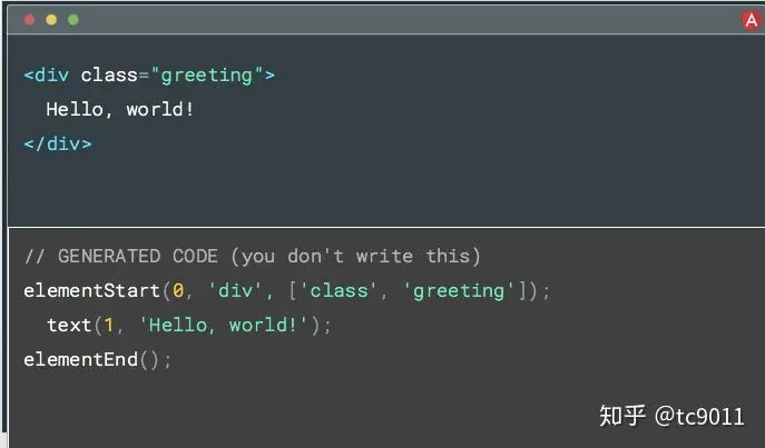 目前,你编写的模板 HTML 通过 Angular 编译器运行,并生成代表模板结构的高度优化的JS 代码。 在运行时,此数据结构将传递给 Angular 解释器,Angular 解释器使用数据来确定如何创建DOM。