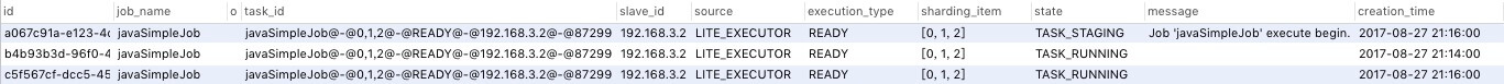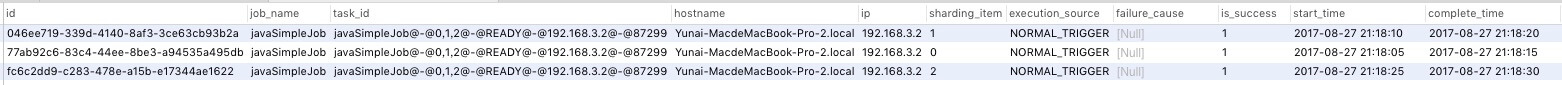 - Elastic-Job 基于关系型数据库记录事件的表结构。