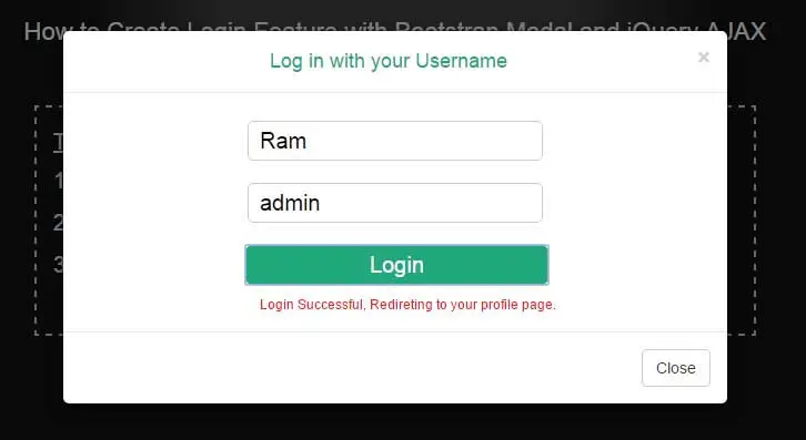 How to create a login feature with Bootstrap Modal and jQuery AJAX