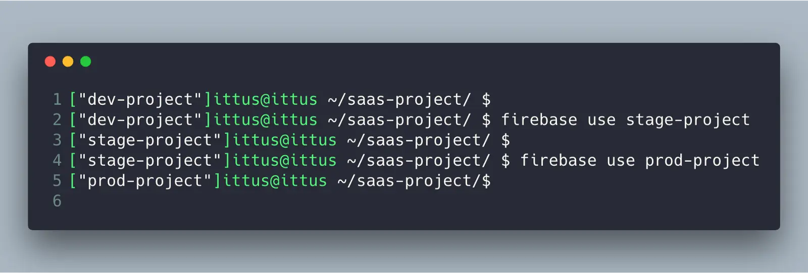 When working on a project with multiple stages (development, staging, production), developers use the command firebase use to switch between projects. It’s very easy to run a command on the production environment instead of the development. This is very dangerous.