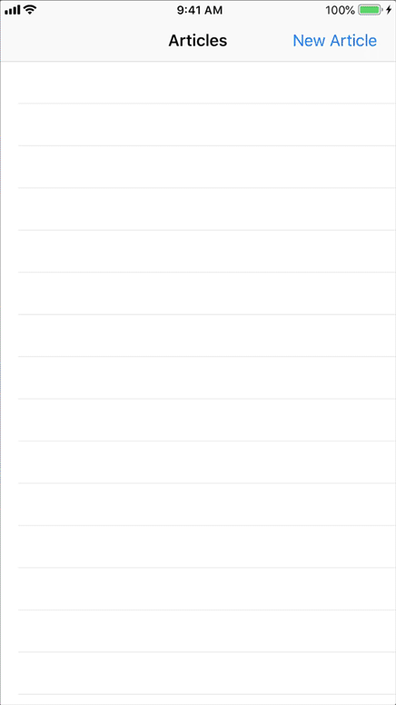 构建并再次运行。 当您搜索此功能并点按它时,您的应用会直接转到New Article屏幕。