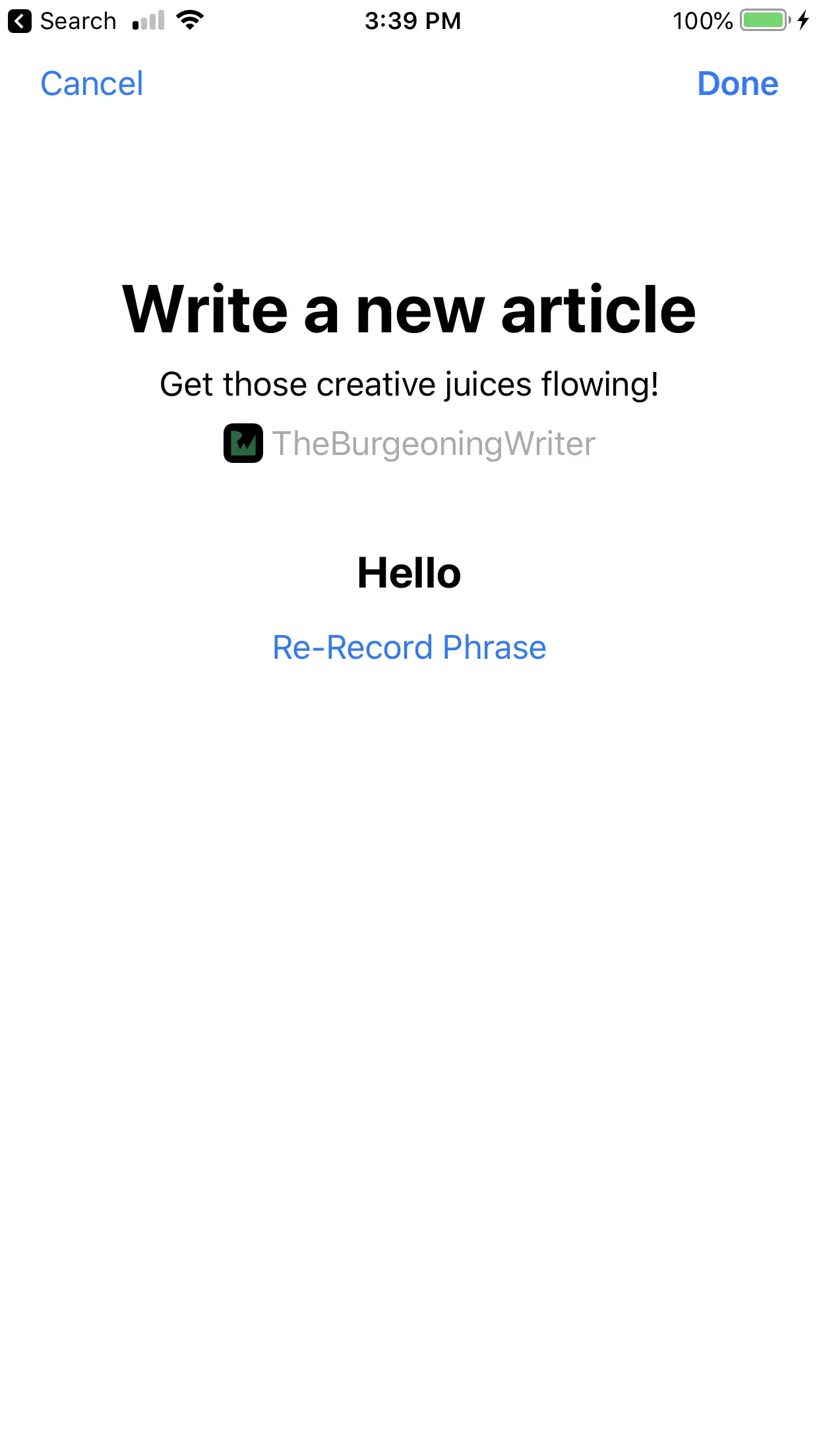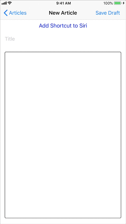 您的第一个快捷方式是允许用户直接进入新文章页面的快捷方式。 这是基于NSUserActivity对象创建快捷方式的最佳选择,因为它会将Siri的用户带入您的应用程序。