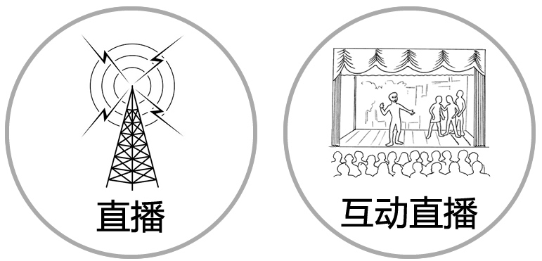 直播也分为两种,一种就是直播服务,一种叫互动直播。打个比方,如果 直播 服务是个信号发射塔,那 互动直播 就是个带舞台的剧院。