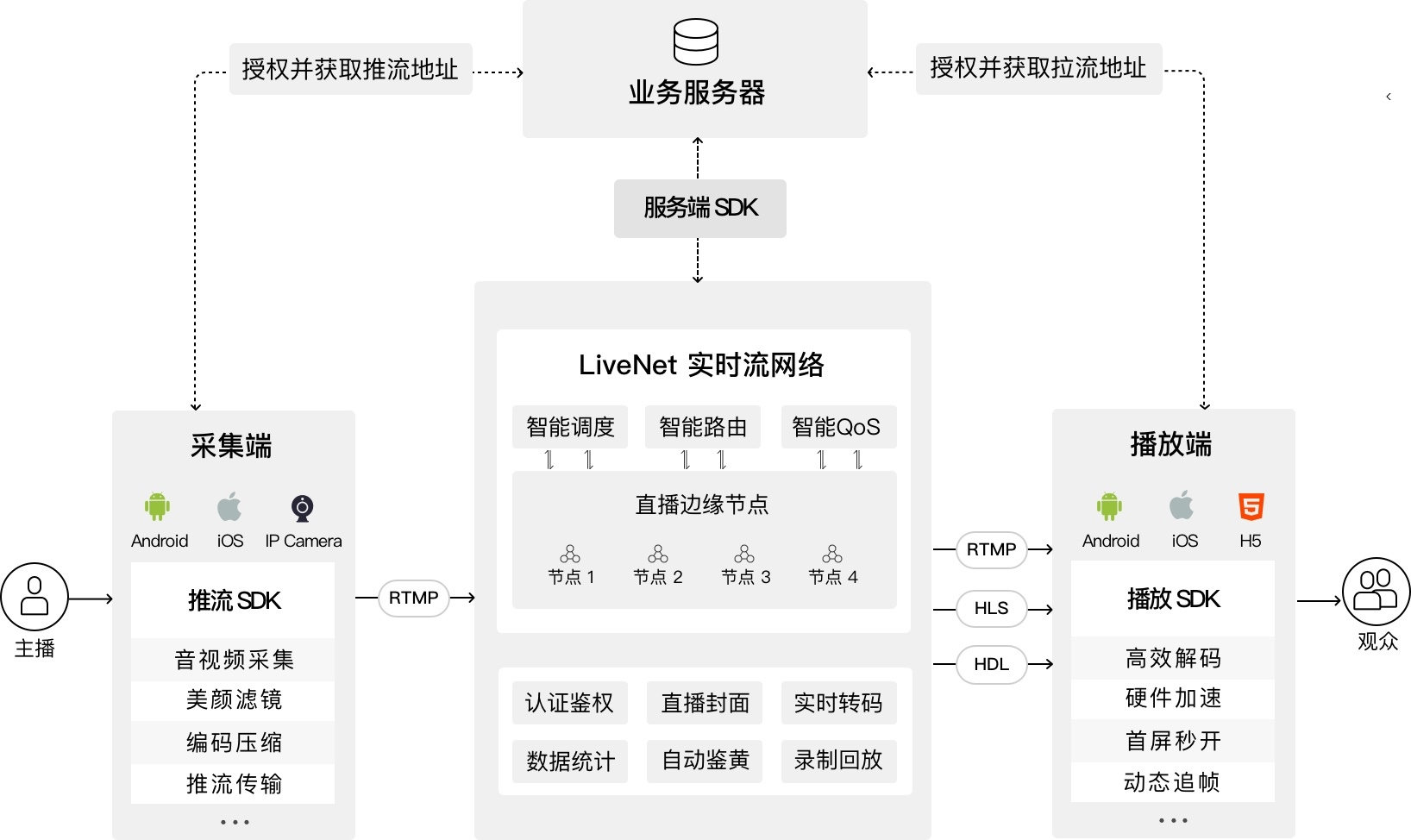 LiveNet 实时流网络 负责流媒体的分发、直播流的创建、查询等相关操作