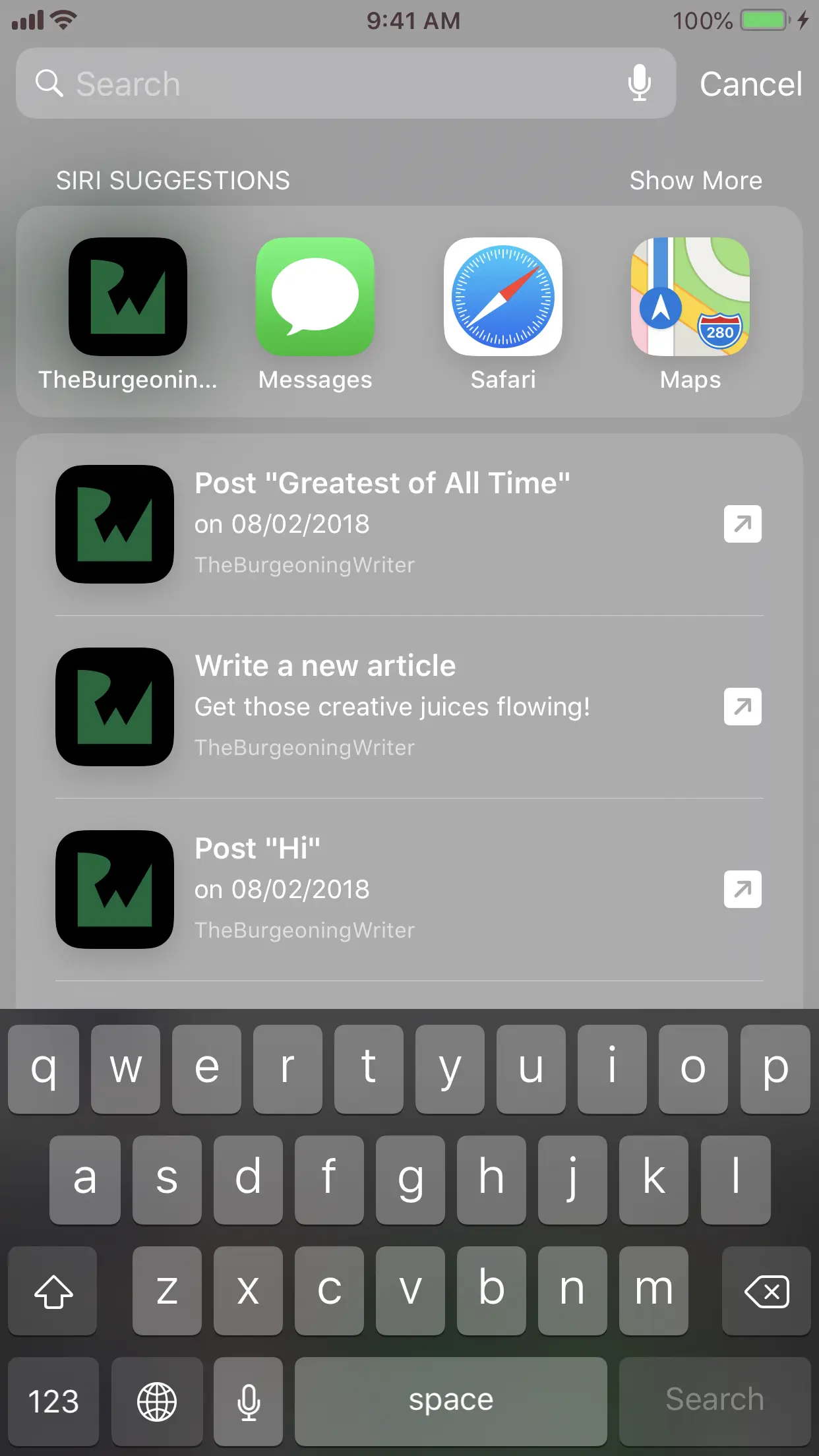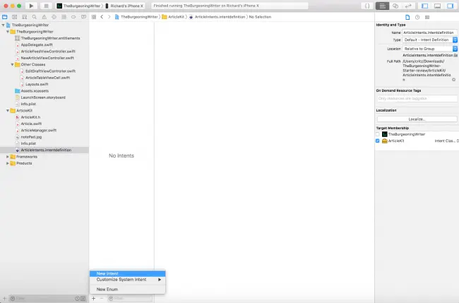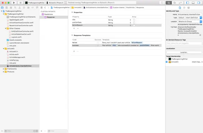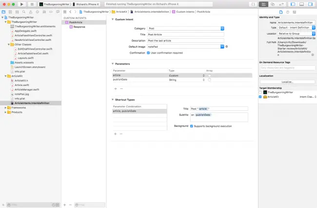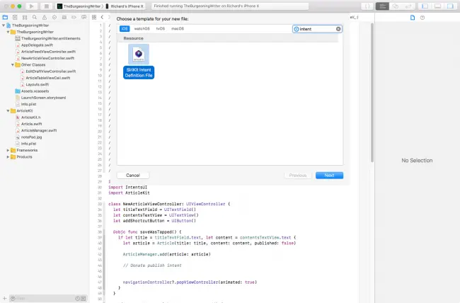 接下来,您希望添加发布直接从Siri编写的文章的功能。 这里的最大区别在于,不是Siri打开你的应用程序,一切都将直接来自Siri UI