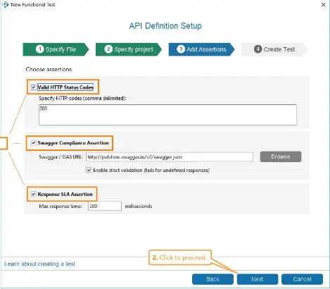 4、在向导的页面上可以选择要添加到测试的断言。ReadyAPI将选定的断言添加到新的测试请求中保证API按预期工作。清除选择并单击“Next”。