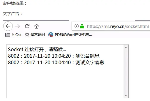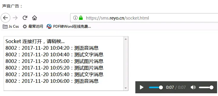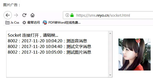 每20秒随机显示不同类型的广告:文字、图片、声音),效果如下: