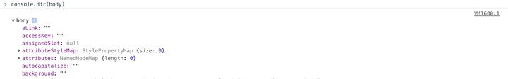 有时候我们很想看一看 DOM 对象上的一些属性,如果我们使用 console.log 来打印,只能把元素结构打印出来,如图: